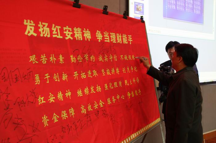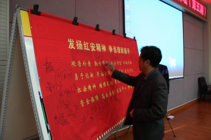 首先,讲坛通过四个情景再现展示了财政四项改革就在我们机关每个人身边。每个情景再现结束后,进行了有奖问答,由局直各单位财务科长和县市区财务科长代表组成的四个代表队对每个情景中提出的问题进行了回答,在场的领导和群众也认真观看情景再现,并积极参与答题。随后,财务科科长李北临同志,以《加快推进民主理财 全面提升科学理财水平》为题进行了主题演讲。他在演讲中结合我市交通运输系统和局机关财务管理实际谈了怎样理解民主理财和科学理财、为什么要开展民主理财和科学理财和怎样开展民主理财和科学理财。听完演讲,局机关各科室纷纷结合实际,针对系统和机关财务管理的制度建设、预算管理和节约措施提出了很多合理化建议。最后,讲坛通过举行局财务科全体人员、局直各单位财务科长和县市区财务科长代表参加“发扬红安精神 争当理财能手”承诺签名仪式,启动了在全市交通运输系统财务人员中开展的“发扬红安精神 争当理财能手”主题活动。局党组书记、局长马宏彦当场对本期讲坛的选题和形式给予了充分肯定,并表示勤俭节约领导要带头,当即带领参加讲坛的局领导班子成员上台参加了承诺签名仪式。
