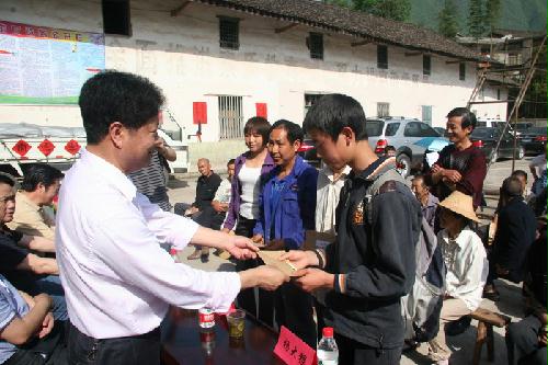 当天,市交通运输局为洛坪村送去100床棉絮、100床毛毯、100件羽绒服;同时,凝聚局机关干部职工真情的16000元个人捐款也分别捐送给洛坪村困难党员、留守妇女、儿童、老人和大学生困难家庭。现场会上,洛坪村党总支书记陈庸壮向市交通运输局局长马宏彦赠送了“访民情情入万户、办实事事暖民心”的锦旗,表达村民的感激之情。