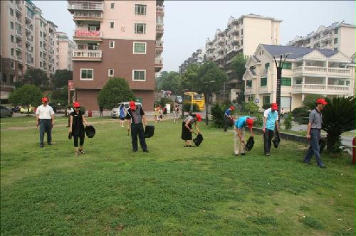 多名干部职工到创建全国文明城市结对帮扶社区——东山花园社区参加义务劳动。