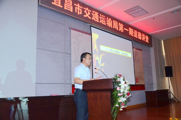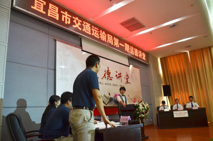 首期讲堂以“诚信交通”为主题,通过唱歌曲,看短片,诵经典,讲故事,作点评、辩论赛、谈道德、送吉祥等8个环节,逐步阐明了,加强道德建设,建立诚信交通的重要性和必要性。从集体高唱《公民道德歌》到青年干部职工的诚信辩论赛;从局领导胡开德同志《谈谈道德》的精彩一课到普通的哥
