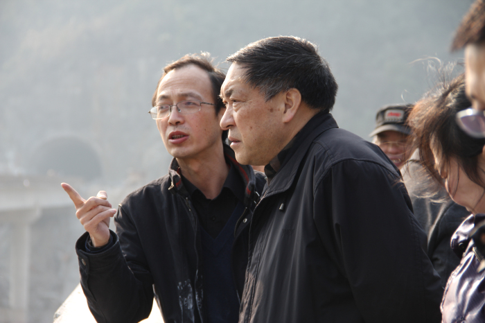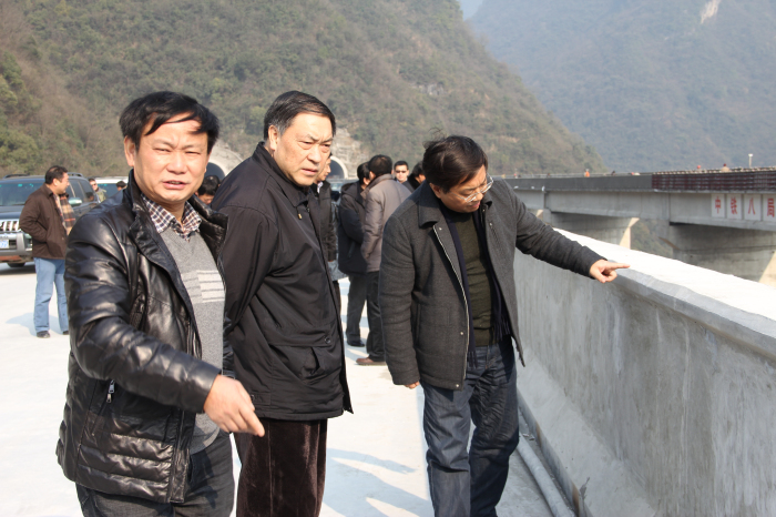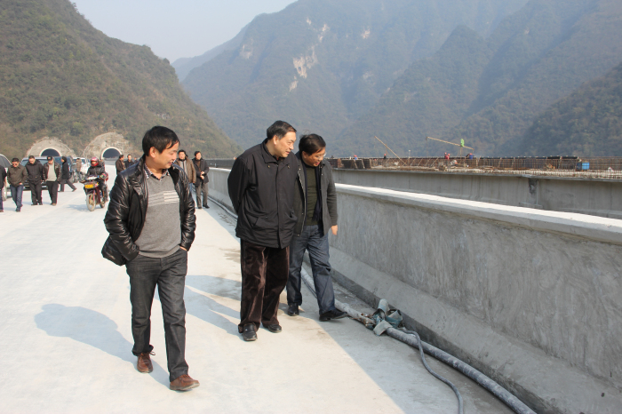 徐厅长、程厅长一行沿途视察了陆渔路四标重点控制性工程熊渡电站大桥、路面二标沥青混凝土路面铺筑现场,随后召开了座谈会。