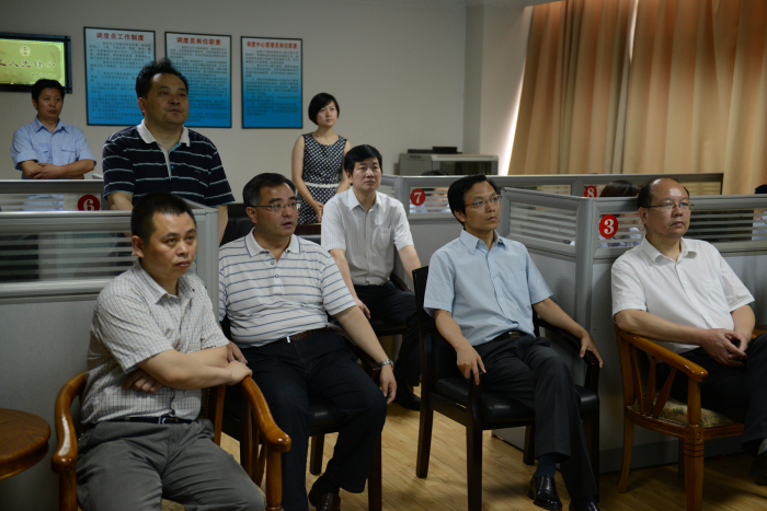 图为:调研组在公交智能调度中心实地考察