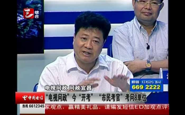 6月28日下午,宜昌市首场“电视问政”围绕“城市发展惠民生”主题在三峡电视台现场直播。局党组书记、局长马宏彦参加了直播并现场回答了有关三峡机场路绿化、打击“黑车”等问题。