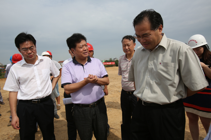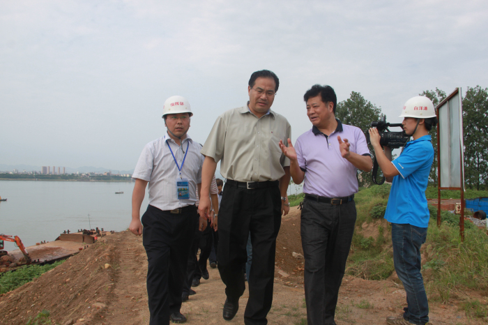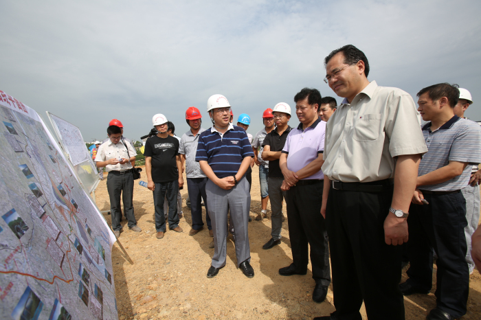 图为马市长一行在白洋港区项目建设施工现场