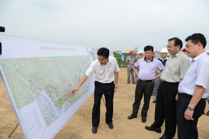 图为马市长一行在枝江318国道万云段一级公路改建工程建设现场