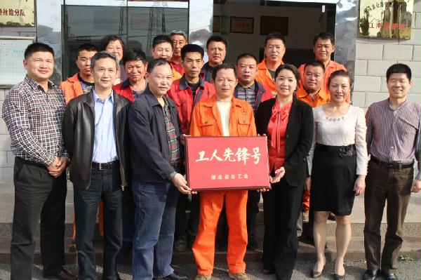 2014年5月6日下午,市总工会党组成员、女工主任朱利民,市总工会劳动保护部部长石廷桥等一行在市交通运输局党组成员、工会主任张德义、市公路局党委成员、工会主席杨忠义的陪同下来到宜昌市公路管理局城区分局江南养护站,为获得“湖北省工人先锋号”荣誉称号的江南养护站授牌。(夏晓群、林亚岚)