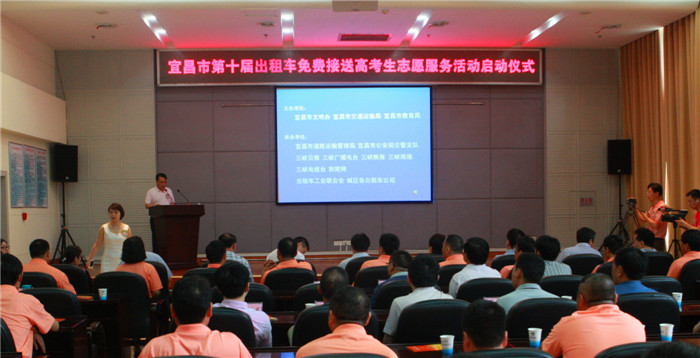 在2014年高考即将来临之际,“宜昌市第十届出租车免费接送高考生志愿服务服务活动启动仪式”于6月4日上午在城区举行。宜昌市委常委、市委宣传部部长廖达凤出席仪式,市委宣传部副部长、市文明办主任李进新、市文明办副主任高万红、市交通运输局局长马宏彦、市道路运输管理局、市交警支队以及各大媒体相关领导参加仪式。