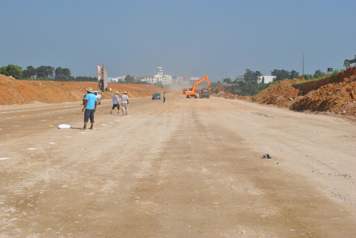 自2013年10月机场路开工以来,建设单位三峡机场路建设指挥部及项目业主宜昌华信交通建设投资有限公司克服地质条件差、天气复杂多变、施工环境恶劣、资金筹集困难等不利因素影响,倒排工期、科学安排、合理交叉、平行推进。现已完成固定资产投资2.5亿元。其中,一期道路工程路基已完成92%,部分路段基层已经开始摊铺,地下电力、通讯和排水管网系统已完成95%,绿化工程已进场作业;二期机场候机楼站前广场及猇亭收费站改造计划2014年8月开工建设,工程施工建设总体进展顺利。