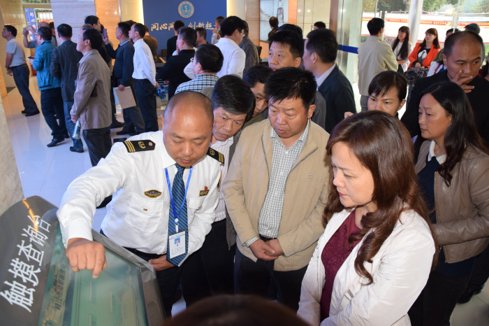 各参会代表在现场工作人员的带领下,参观了法治文化长廊、GPS监控平台、电子查询平台、执法器材装备室、小阅览室和小浴室等,观看了枝江港航海事局自行制作的题为“同心追梦”的宣传片和道德讲堂活动视频,并通过服务评价器当场对窗口工作人员的精神风貌和服务态度进行了评价。大家对枝江港航海事局文明窗口创建工作给予了高度评价,对工作人员的综合素质纷纷表示赞赏。