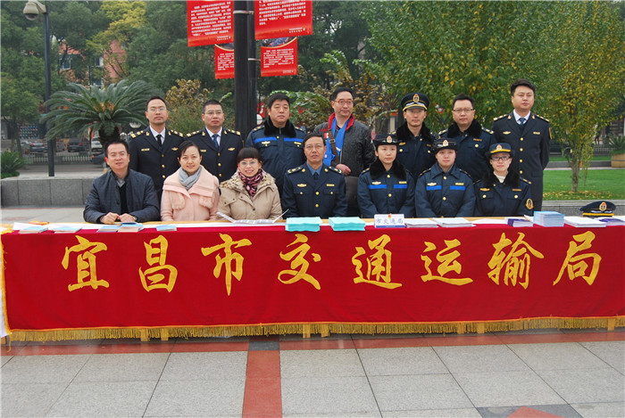 图为:宜昌市交通运输局行政执法人员在夷陵广场进行法制宣传