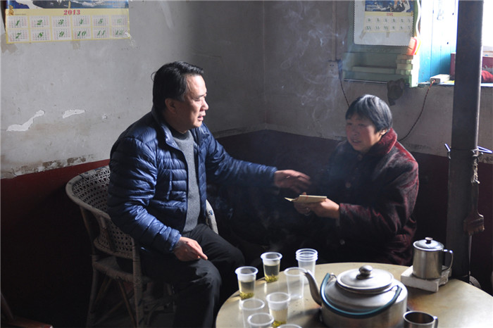 1月23日,市交通运输局副局长胡开德、工会主任张德义带领工作组成员赴长阳鸭子口乡古坪村走访慰问,并就2015年“三万”活动帮扶工作开展调研。工作组一行抵达古坪村后,便深入农户家中,与村民拉家常、聊收成、讲政策,鼓励他们结合村级产业发展规划安排好家庭生产劳作,争取早日脱贫致富,并为结对困难家庭送去慰问金6000余元。