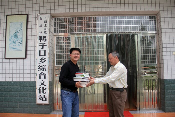 工会主任张德义同志给乡文化站赠送法律书籍