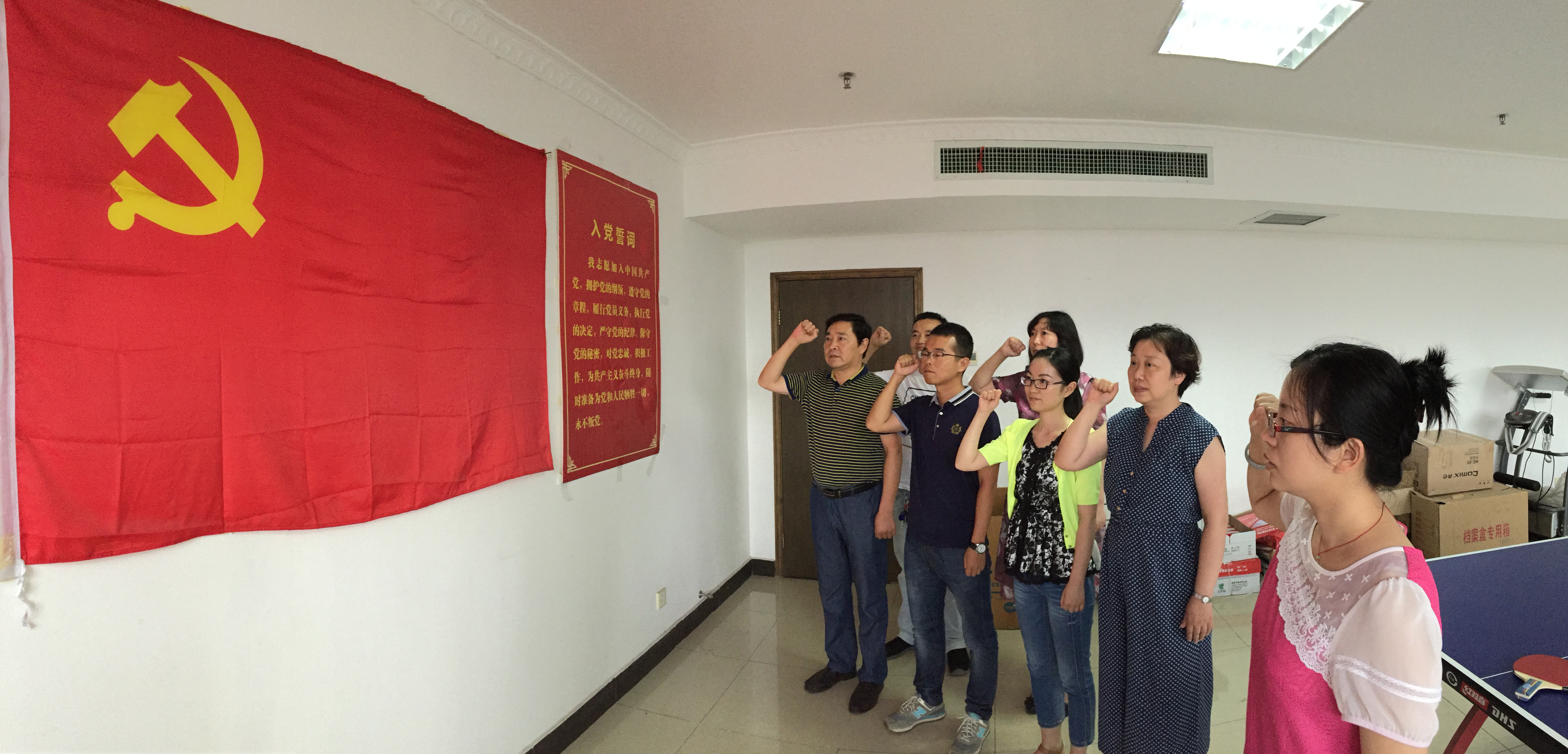 面对党旗,誓词,大家一起大声宣读:“我志愿加入中国共产党,拥护党的纲领,遵守党的章程……”。通过重温入党誓词,大家又一次宣誓当年的承诺,落实到日常工作、生活中,坚定不移的做一名合格党员。
