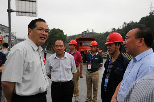 7月8日,宜昌市委副书记、市长马旭明一行来到夷陵区调研宜黄一级公路项目建设进展情况。区委书记刘洪福、区交通运输局局长赵学军陪同调研。
