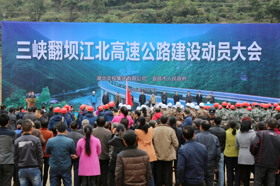 2016年11月1日上午,三峡翻坝江北高速公路建设动员大会在三峡坝头库首第一镇夷陵区太平溪镇顺利举行,三峡翻坝江北高速公路项目正式开工建设。省委常委、宜昌市委书记黄楚平,宜昌市委副书记、市长马旭明,湖北交投集团总经理龙传华,中交集团华中区域总部党工委书记肖继生,市、区领导马学军、兰银、王均成、王玺玮等出席建设动员大会。