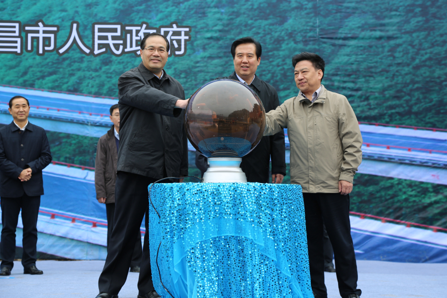 省委常委、宜昌市委书记黄楚平,市委副书记、市长马旭明和湖北交投集团公司总经理龙传华共同启动水晶球,宣布项目正式开工。