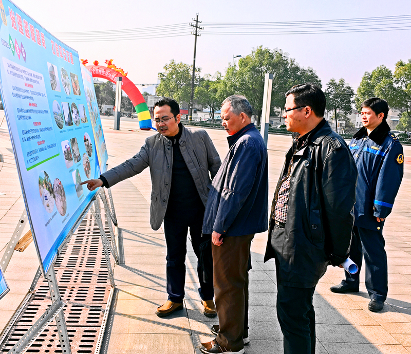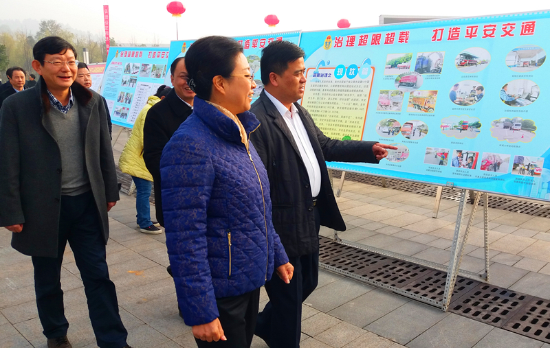 宜昌市领导刘红洲、尚葵、陈月生等参观市交通运输局法制宣传展板