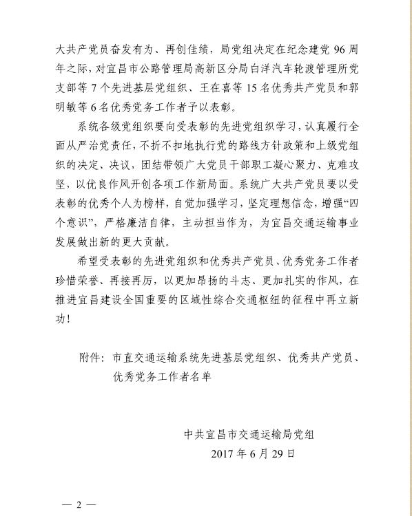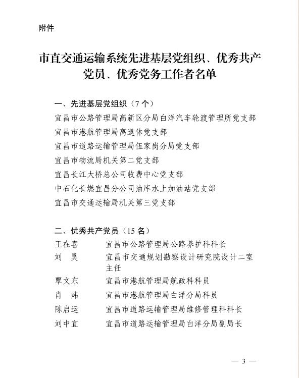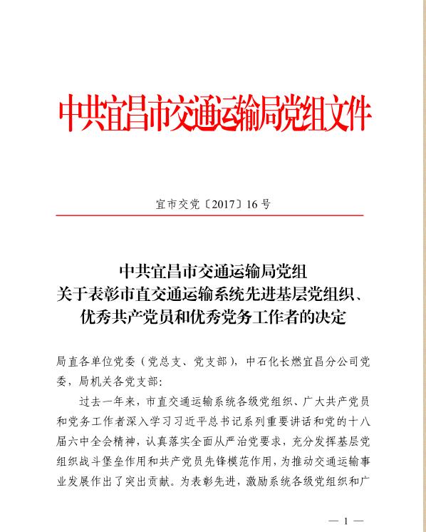 关于表彰市直交通运输系统先进基层党组织、优秀共产党员和优秀党务工作者的决定