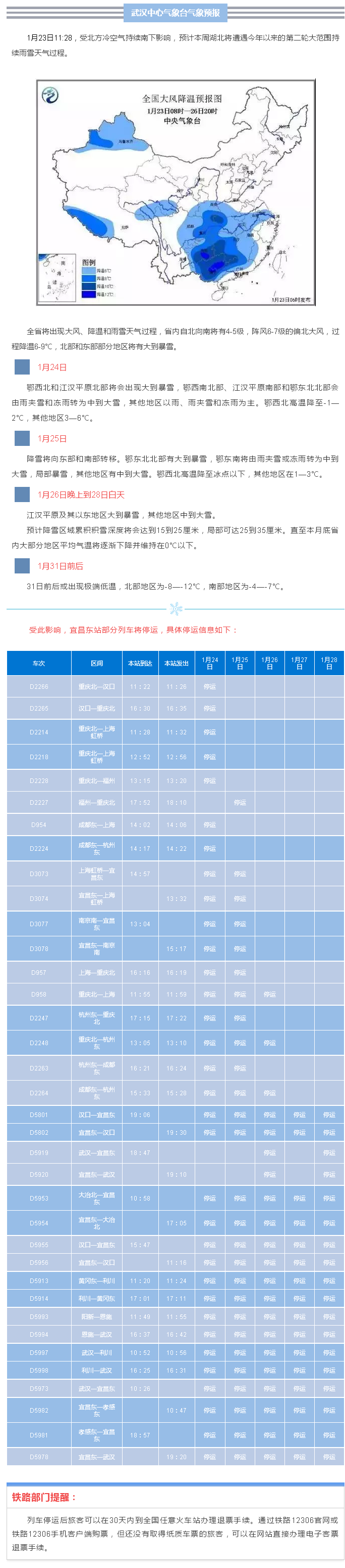 风雪来袭,宜昌东站这些线路停运,请速相互转告!