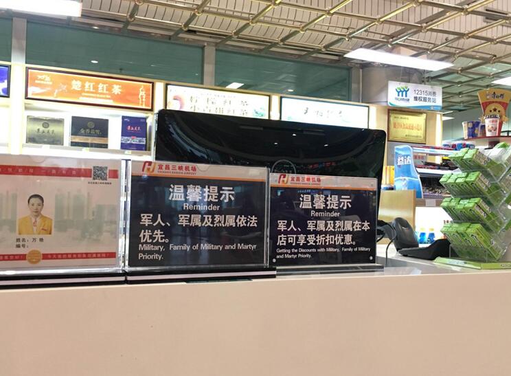 服务方面,为给旅客营造温馨舒适的乘机环境,三峡机场成立特殊旅客服务小组,重点关注老弱病残孕、无陪儿童等特殊旅客和需要帮扶的特殊家庭旅客,实行主动迎候,并引导至主任值机柜台,协助其办理乘机手续;同时为他们开放绿色安检通道,安排专人引导优先过检。尤其值得一提的是为深入贯彻落实习近平总书记重要指示精神,践行民航“真情服务”要求,全面贯彻真情拥军的服务理念,三峡机场持续完善“军人依法优先”服务,从值机到安检,从出发至到达,在候机楼各功能区域设置30块军人优先、优惠指示牌,用温暖的小手传递大爱,为军人、军属及烈属提供优先及专属服务,同时在候机楼商业店铺内军人凭军官证可享受9.5折优惠,春运期间三峡机场通过军人优先通道护送335位军人平安出行。