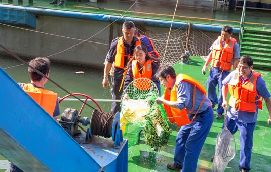 当天,宜昌市地方海事局“江豚”志愿者服务队在黄柏河夜明珠段开展清漂行动,旨在号召广大市民坚定不移地走生态优先,绿色发展之路,弘扬公益精神、倡导低碳环保行为。“鄂海巡0120”担当清漂船,在黄柏河水域开始一次特殊的巡航任务,由航政科、检查站、大公桥分局相关人员组建的江豚志愿者服务队,沿黄柏河夜明珠段,挥网清理漂浮在河面的白色垃圾。在中长燃黄柏河水上加油站,“江豚”们齐心协力清除了盘踞在河底多年的杂物,经过三个小时的辛劳奋战,所有清漂垃圾均上岸分类处置,还黄柏河一江碧绿。(供稿:宜昌市港航管理局 严莉)