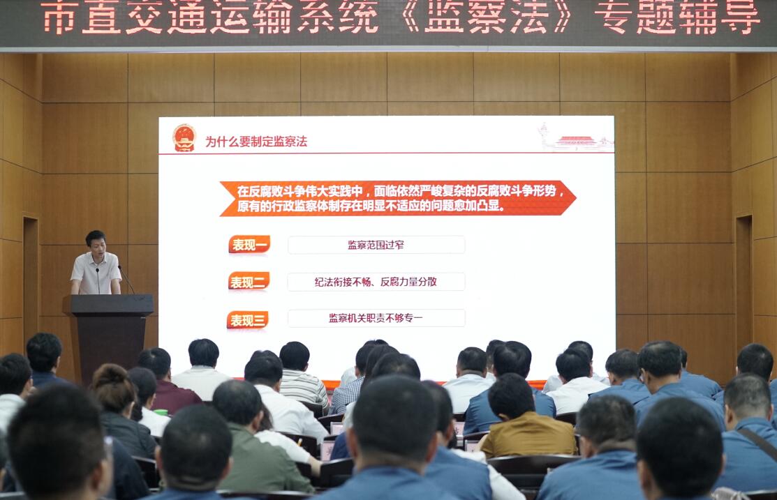 市纪委派驻市交通运输局纪检组长、市交通运输局党组成员谢民就《中华人民共和国监察法》进行专题辅导