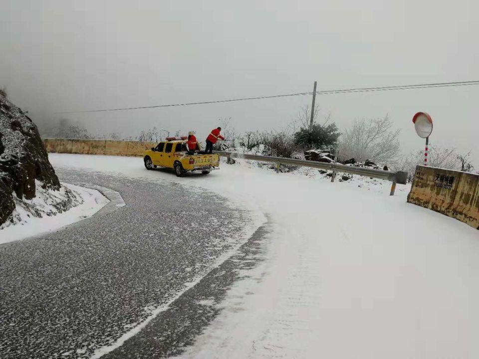 长阳公路局对318国道沪聂线纪念碑至碑坳段、兴五线碑坳至店子坳路段撒布融雪剂