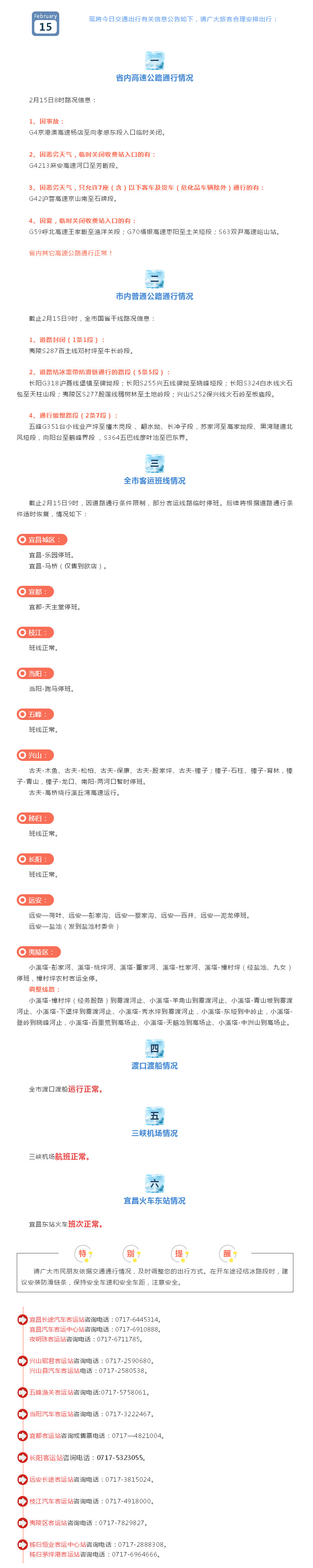 2月15日全市综合交通信息公告!25条公路客运班线停运,机场、铁路正常,请相互转告!