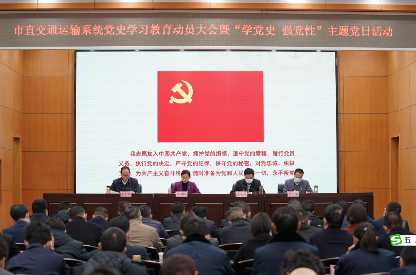 3月19日下午,市直交通运输系统召开党史学习教育动员大会暨“学党史 强党性”主题党日活动,深入学习习近平总书记在党史学习教育动员大会上的重要讲话精神,认真贯彻党中央统一部署和省委、市委工作要求,安排部署党史学习教育。市交通运输局党组书记、局长胡朝晖同志作动员讲话。市交通运输局党组成员、副局长、直属机关党委书记唐云伟同志主持会议。