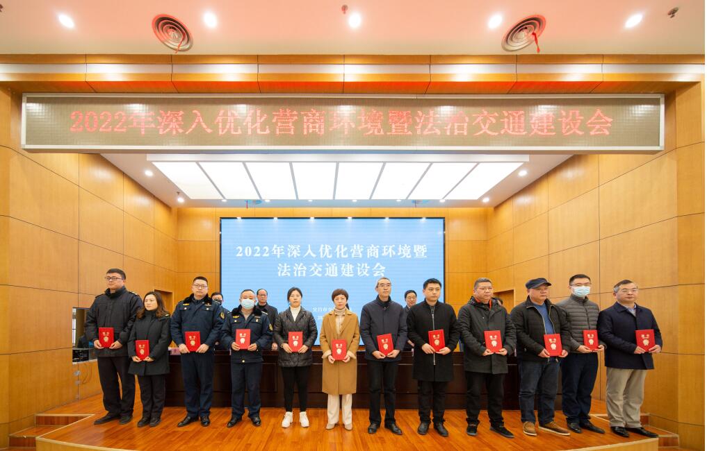 会议传达了省市深入优化营商环境大会精神,全面总结了2021年优化营商环境及法治交通建设成效,研究部署了2022年工作。会上,还播放了营商环境暗访短片,通报了2021年营商环境任务完成情况,进行了交流发言,为12名营商环境监督员颁发了聘书,印发了2022年优化营商环境任务清单、宣传任务清单和2022年法治交通建设工作要点。