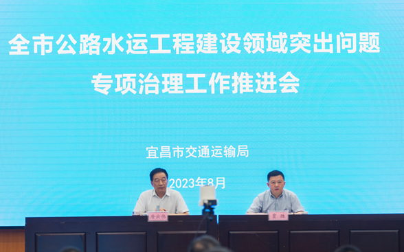 市交通运输局通报全市公路水运工程突出问题专项治理工作推进情况,市公路建设养护中心、各县市区交通运输局、西陵区水利局、伍家岗区农业农村局、宜昌高新区经发局汇报情况。会议以视频形式召开,各县市区交通运输局设分会场。