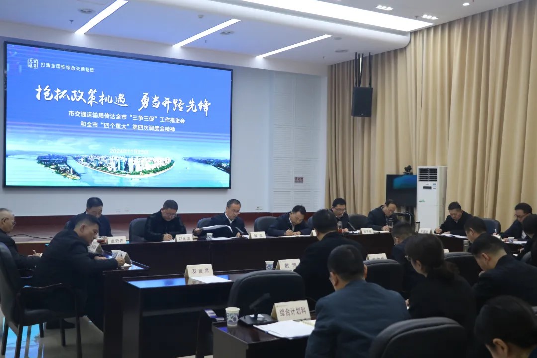 会议要求,提高站位、强化担当,以更加饱满的干事激情做“三争三促”先行者。要深刻理解市委深入贯彻党的二十届三中全会和习近平总书记考察湖北重要讲话精神,全力以赴抓项目、扩投资、稳增长、惠民生,迅速把思想和行动统一到市委“三争三促”工作推进会和“四个重大”调度会精神上来,增强“准、快、敢、实”意识,弘扬“拼、抢、比、干”作风,不遗余力争政策、争项目、争资金,统筹资源促投资、促转型、促发展,最大限度把政策含金量转化为发展实物量,推动交通工作再上新台阶。