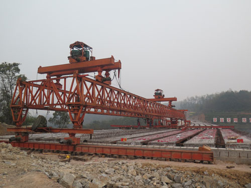 据现场施工人员介绍,下芦溪大桥全长187米,桥梁共有6跨,每跨间距30米,T型梁60块,上部结构采用先简支后连续结构,下部结构鉴于全线桥梁桥高不大,桥墩采用了技术成熟、便于施工、受力明确的圆柱式桥墩,然后根据地质情况,桥墩、桥台均选用桩基础,桩基础按嵌岩桩、摩擦桩设计。截止目前,三、四标段共三座大桥,四标段中溪河大桥和下芦溪大桥已成功合龙,三标段马磨河大桥还有两跨20片梁未吊装,预计下月初即可吊装完成实现合龙,届时,龙五一级公路已开工段将实现路基桥梁全面贯通。