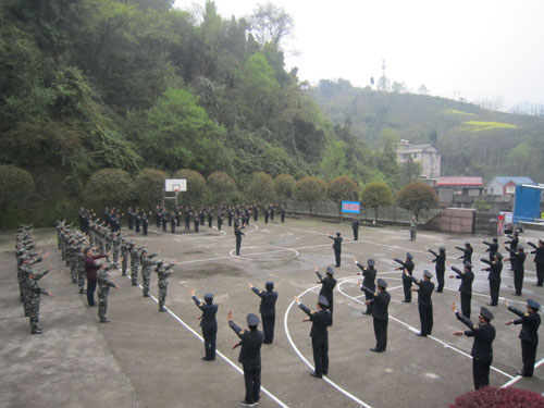 据悉,动员会后进行了两天半的军事化训练,参加军训人员达90余人。一是组织进行了交通指挥手势训练;二是聘请武警教官进行了军姿队列训练;三是委托人武部教官指导进行了射击打靶训练。教官教的很认真,参训学员学的也是格外专注,略寒的早春天气加上训练场上不期而至的降雨也丝毫减损不了大家昂扬的训练热情,百余人在训练场上冒雨训练挥洒汗水令人起敬。