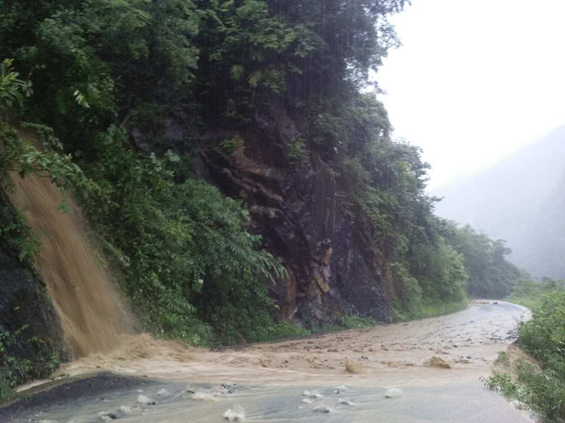 图为351国道黑湾处边坡塌方,导致交通中断(陈艳君 摄)