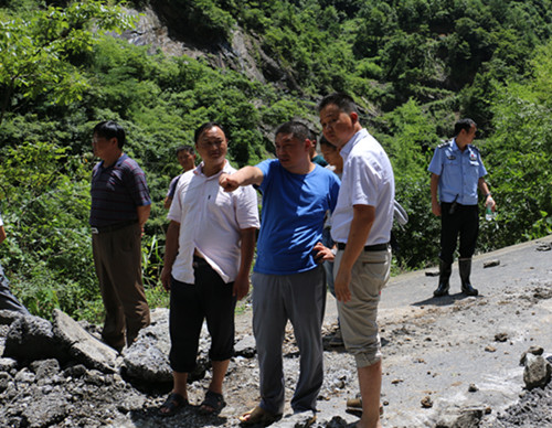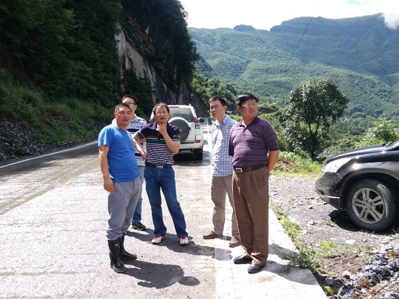 市交通运输局局长马宏彦、公路管理局局长丁庆荣、监督长王庆一行赶到受灾一线查看灾情指导救灾(市交通运输局 摄)