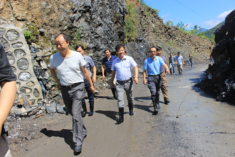 省交通运输厅防汛工作组一行在五峰受灾一线查看灾情(肖伟 摄)