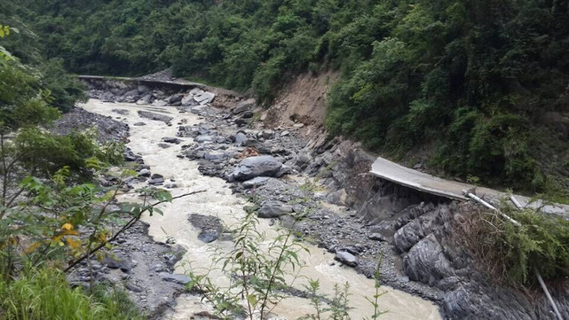 图为交通运输局救灾工作人员拍摄的楠木桥村被冲毁的道路