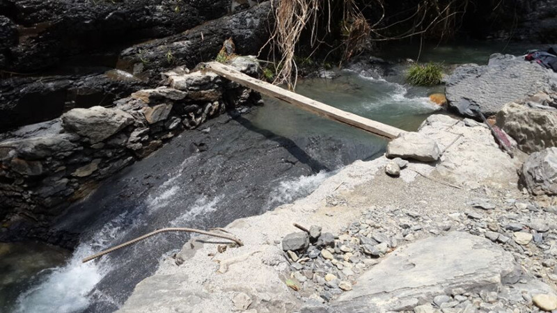 图交通运输局救灾工作人员拍摄的楠木桥村被冲毁的桥梁