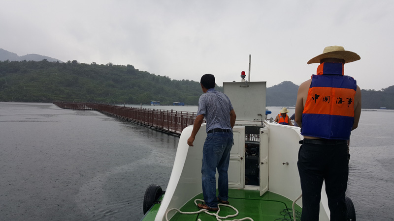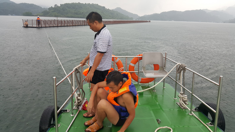 在行进途中,水上应急救援小分队一边通过电话与求助者进行沟通,一方面是安抚求助者情绪,避免过度恐慌造成意外,另一方面可进一步了解险情状况;一边通知隔河岩港航海事所海事人员就地征调征船艇率先赶赴事发水域,与时间赛跑,赢得在狂风暴雨下的最佳救援时机。先前赶往救援地点的隔河岩港航海事所海事人员在抵达该水域后,见风浪确实太大,断裂脱节浮桥一时无法拖离,在与随后赶到现场的水上应急小分队和110特勤大队人员沟通后,决定兵分两处,一组人员将该渔民养殖户带离现场,进行妥善安置;一组人员将断裂脱节的浮桥拖离至背风位置进行临时性加固措施,防止事态进一步恶化。由于天色渐晚,能见度低,再加上暴雨肆虐,于当晚23时,终于将事态完全控制、险情得到基本排除。