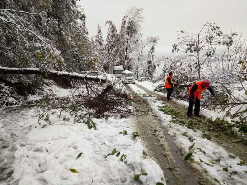 今年入冬以来,长阳境内高山地区多处开始降雪,导致行驶在该区域的一些车辆无法正常通行,给道路交通的安全畅通带来了极大隐患。为解除险情, 11月9日,长阳交通运输系统兵分两路,分别由县交通运输局副局长王春成同志、公路局局长刘小红同志带队赶赴天柱山、318国道渔峡口镇碑坳段查看险情,指挥除雪保畅工作。