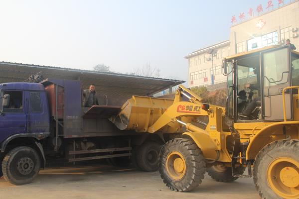 一辆货车在联合执法小组的监督下,主动配合实施切割高墙板作业。