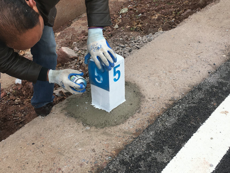 为保证里程碑、百米桩的准确性及规范性,工作人员用卷尺在现场认真细致地测量,精心对点位进行定位、复核,对里程碑和百米桩的颜色、尺寸、文字、埋深等严格按照“国标”要求进行设置,做到规范、醒目。