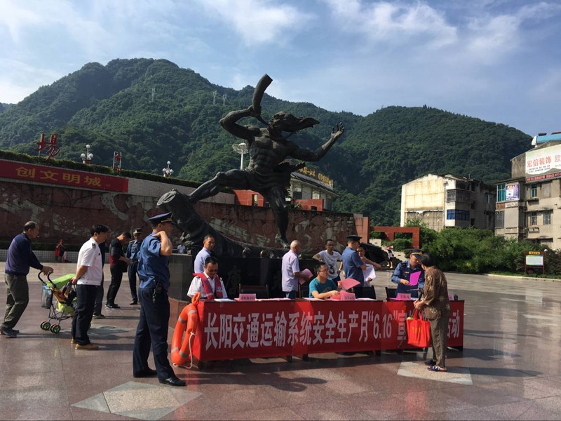 为着力营造平安、文明、和谐的交通运输环境,普及安全知识,进一步提高公众安全意识,6月16日,长阳交运局以“全面落实企业安全生产主体责任”为主题,组织公路、运管、海事等执法部门顶着炎炎烈日走上街头,向广大市民群众宣传交通安全知识。
